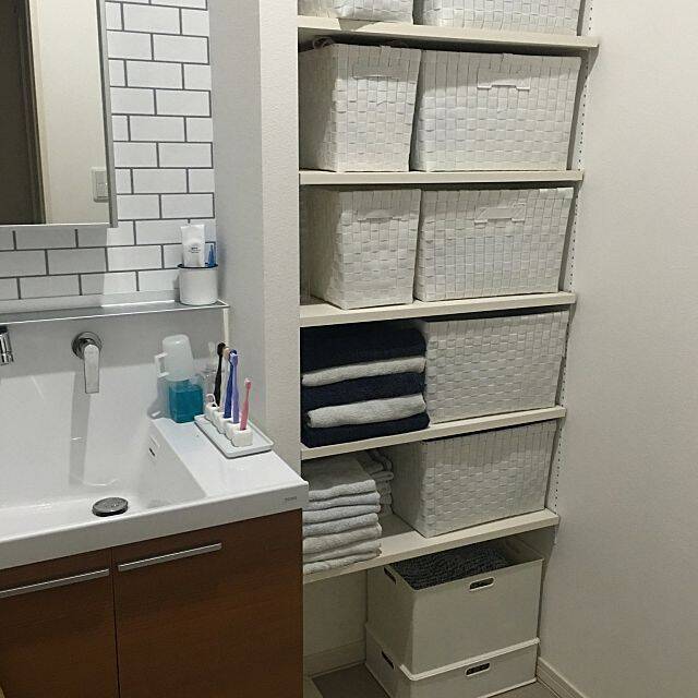 手頃にスッキリ見せるには 無印 ニトリ Ikea を使った 洗面所 収納術 キナリノ
